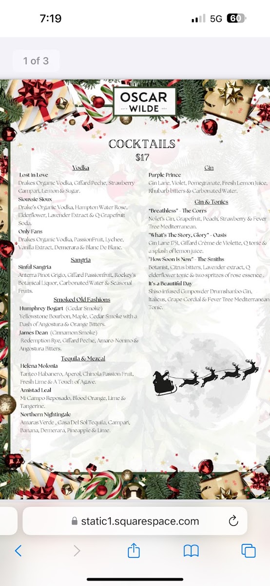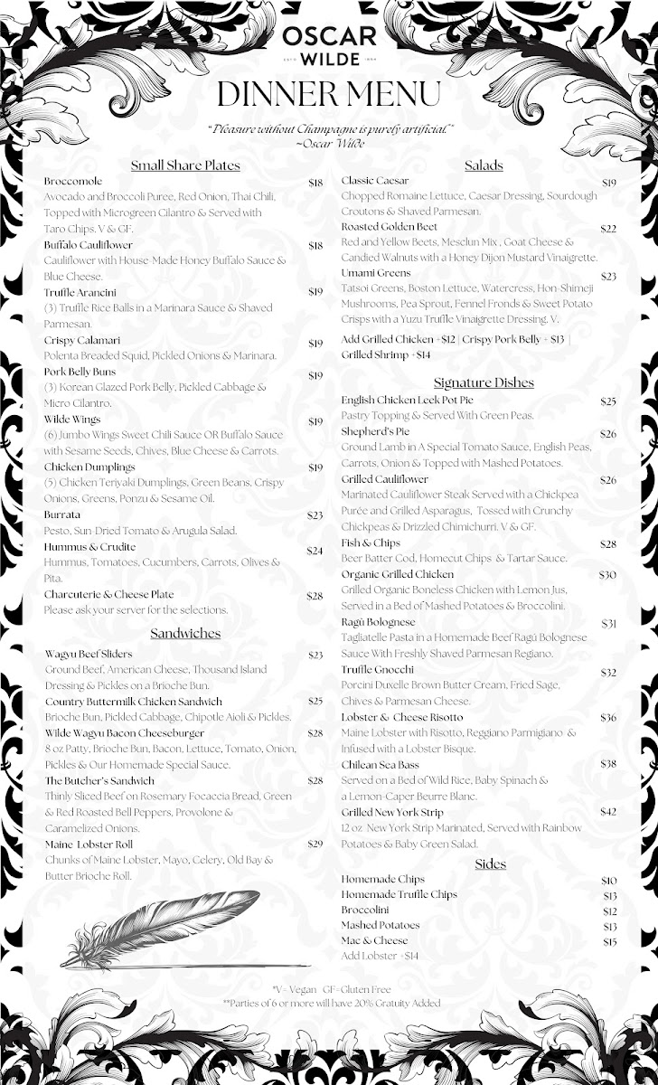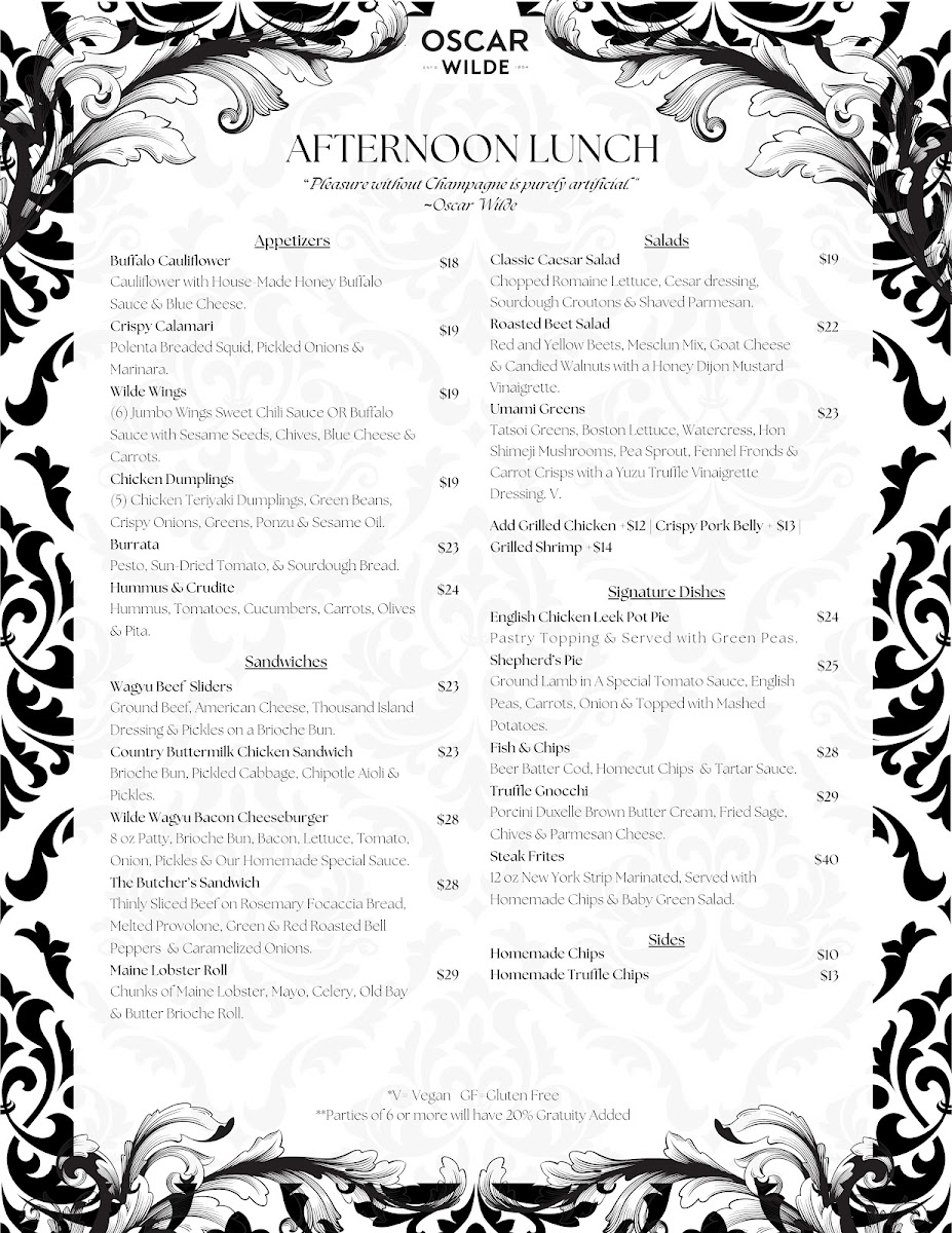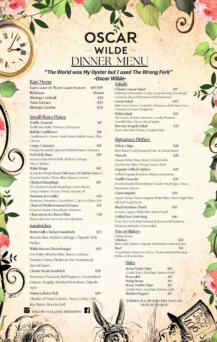 Oscar Wilde Menu